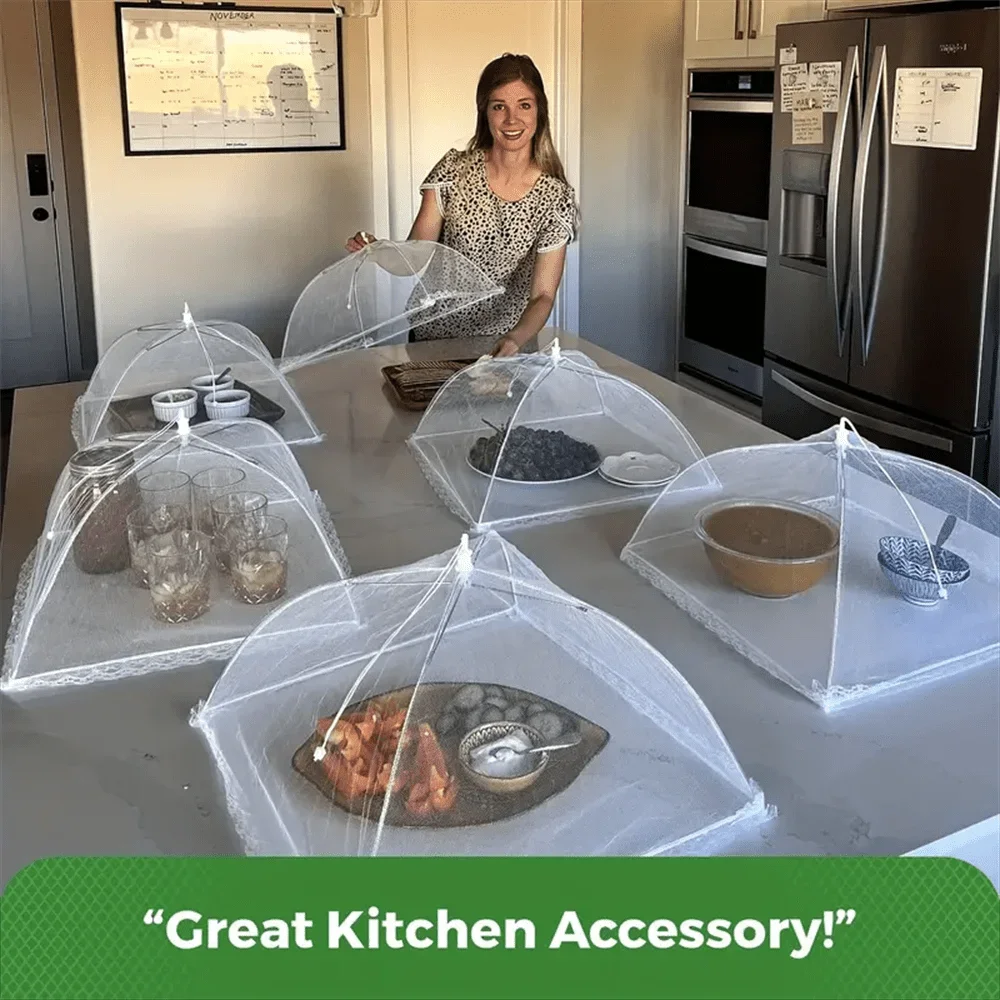 4.FÁCIL DE ABRIR E DOBRAR: Dobrável e reutilizável, o design de guarda-chuva bastante inteligente é extremamente fácil de abrir e dobrar para armazenamento, fácil de limpar, à mão, quando os alimentos estiverem presos neles, basta enxaguar em um pouco de água fria, mergulhar em água morna com sabão, abra e seque ao ar.